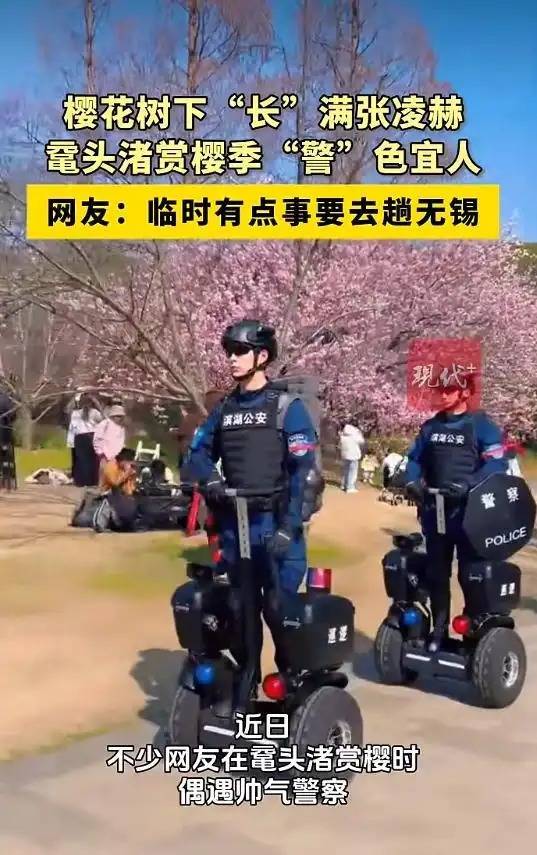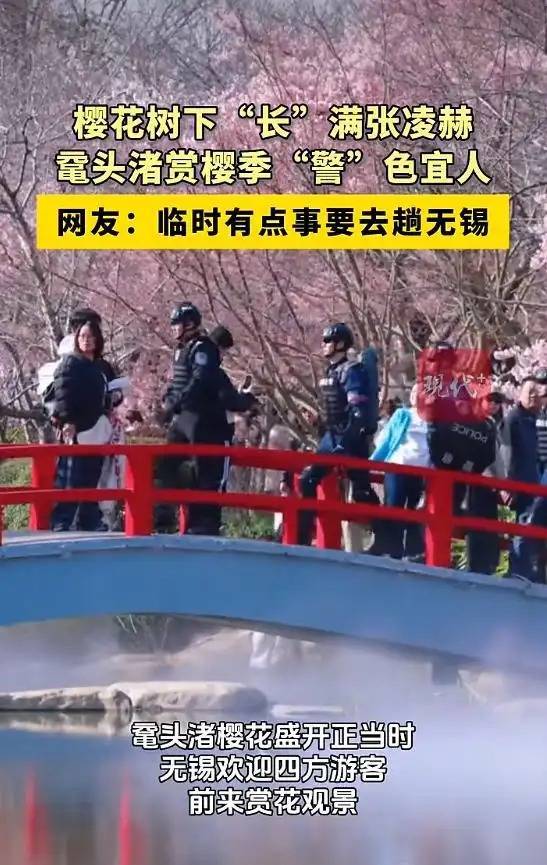 近日,无锡鼋头渚早樱绽放,游人如织,不少网友在鼋头渚赏樱时偶遇帅气警察,连连发评论夸赞。