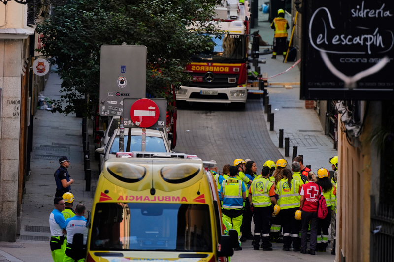 10月7日,救援人员在西班牙马德里建筑垮塌事故现场工作。